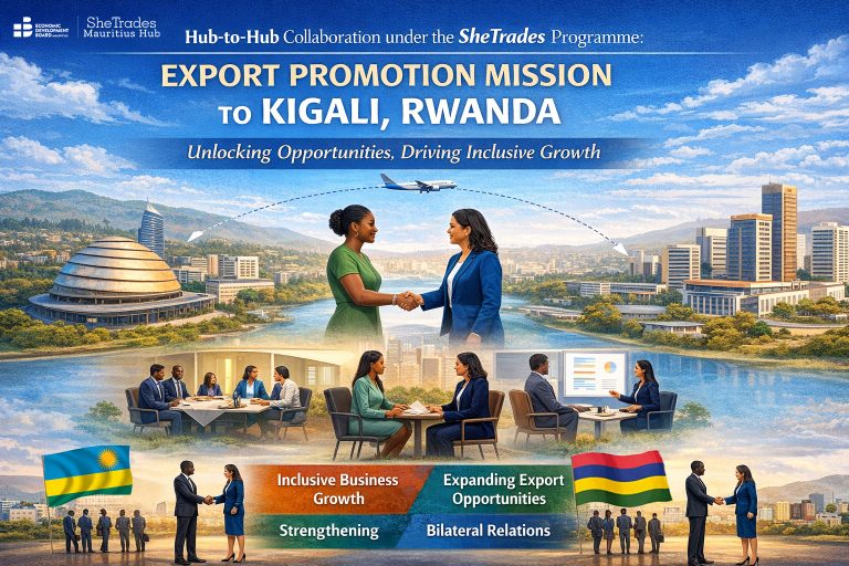 The Economic Development Board (EDB), host institution of the SheTrades Mauritius Hub, in collaboration with the Private Sector Federation of Rwanda, host institution of SheTrades Rwanda, is organising an export promotion mission for goods and services to Rwanda from 18 to 20 May 2026.